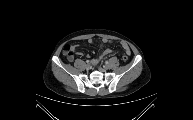 橫向掃描Sigmoid colon,對憩室發炎處的特寫